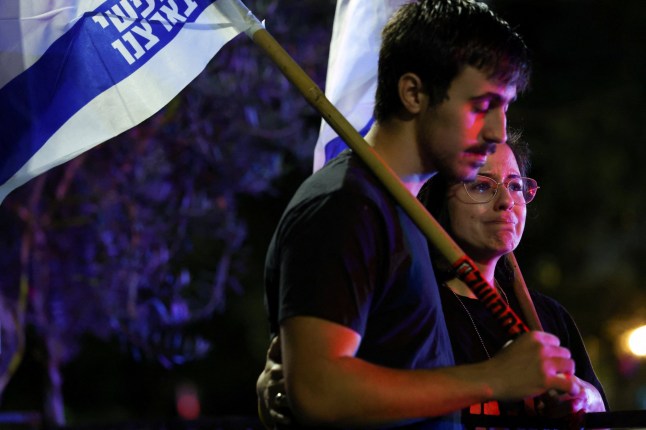 Israelis watch as a convoy transporting the bodies of deceased hostages,kidnapped during the deadly October 7,2023 attack by Hamas,arrives at Abu Kabir forensic centre (Picture: Reuters)