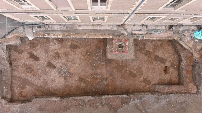 An aerial view of the excavation. The remains of 20 babies were also found (Picture: Jérôme Berthet/Inrap/Cover Media)